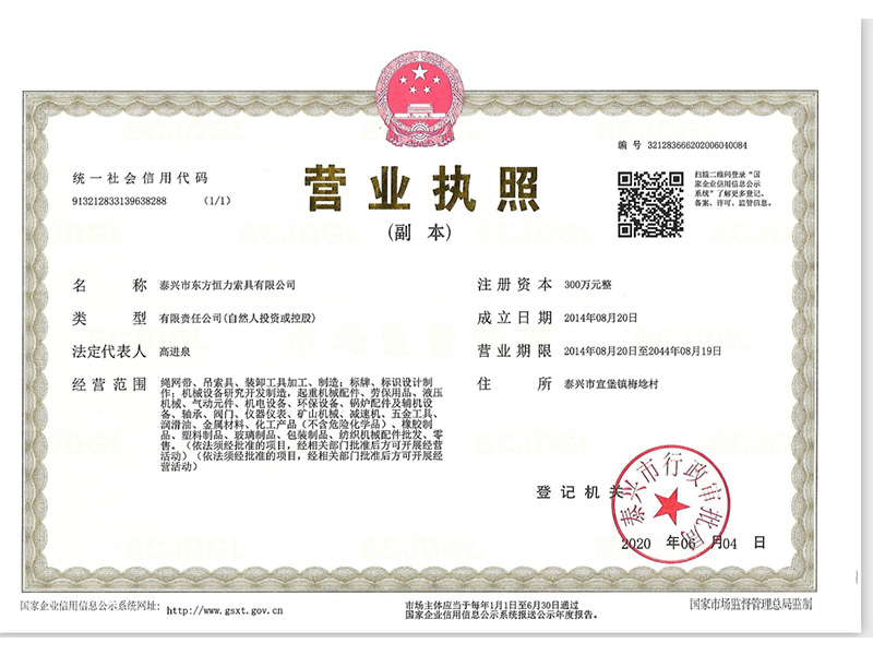 東方恒力資質(zhì)證書